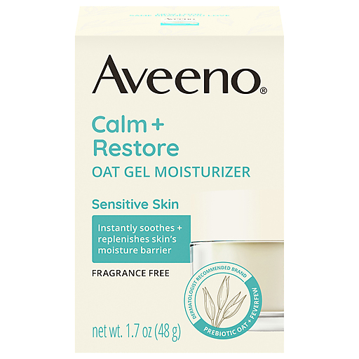 Hydrate your sensitive, irritated, dry skin with Aveeno Calm + Restore Oat Gel Facial Moisturizer. Tested to be gentle on sensitive skin, the gentle oat gel moisturizer instantly soothes & replenishes skin moisture barrier. Aveeno Calm + Restore designed for sensitive skin with prebiotic oat, goes beyond soothing to strengthen skin's moisture barrier. The lightweight hydrating gel cream continues to moisturize for 24 hours so even sensitive skin feels comfortable all day. The hypoallergenic cream with prebiotic oat helps soothe dryness & nourishes skin's natural moisture barrier while feverfew calms & 97% noted skin feels less irritated, more tolerant & comfortable all day. The fast-absorbing, non-comedogenic formula is free of fragrances, parabens, alcohol, dyes & phthalates & leaves skin feeling soft & supple. This soothing moisturizer is gentle & effective.