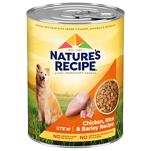 Give your dog a wag-worthy flavor adventure with Nature’s Recipe Stew Chicken, Rice & Barley Recipe wet dog food. It’s more than just an enjoyable canned dog food — it’s natural dog food made with added vitamins, minerals and nutrients to help support all your dog’s needs. This recipe was formulated by expert pet nutritionists to include purposeful ingredients like real chicken. And because we believe that every ingredient counts, you’ll find no added corn or wheat and no artificial flavors or preservatives in this wholesome recipe. So, crack open a can and fuel the wag with a tasty meal that provides all your dog needs, and nothing they don’t.