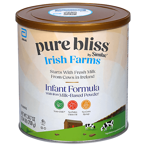 Pure Bliss by Similac infant formulas are made with high-quality ingredients, modeled after breast milk,† and crafted with care for your little one. As the makers of Pure Bliss, we’re inspired by the idea that providing nutrition for your baby should be simple. We’re here to support you on your journey with baby—to nurture their growing body and cradle them with love. Pure Bliss by Similac Irish Farms* starts with fresh milk from cows in Ireland. It is made with high-quality ingredients and has DHA to support baby’s brain and eye development. It also has no artificial growth hormones,‡ no palm olein oil, no corn syrup, and it’s non-GMO.§