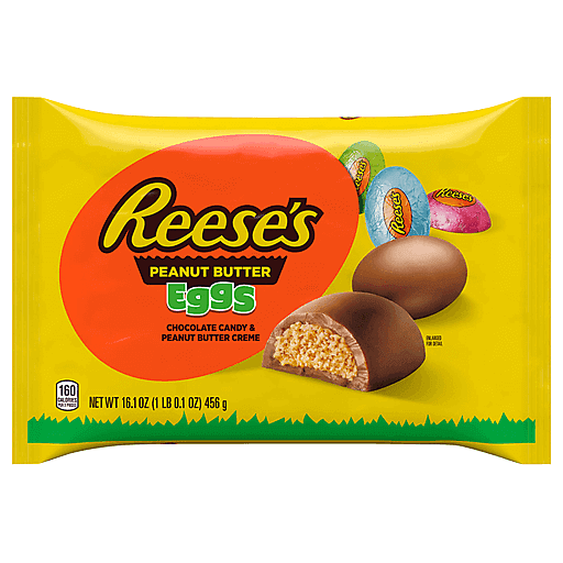 Savor the unmistakably delicious taste of REESE'S peanut butter creme covered in smooth chocolate candy with these fun egg-shaped Easter treats. It's the same yummy peanut butter creme taste you know and love ready for when the Easter Bunny arrives this spring. Individually wrapped peanut butter creme eggs are entertaining rewards for when you hide plastic eggs around the yard. Your children — and maybe even some adults — will be in for a sweet surprise when they see what's inside their well-deserved finds after searching high and low. You can also fill up Easter baskets with REESE'S chocolate covered peanut butter creme eggs to spread the happiness of such a rich combination. After an exciting day filled with spring activities, grab a cold glass of milk to pair with your creamy candy. Make your Easter even more complete by adding these peanut butter creme eggs to your baking creations. This is a treat that will have you hopping for joy! Bake peanut butter bunny cakes or add REESE'S chocolate candy eggs to your ice cream sundae toppings selection all spring long. These candies also make delicious treats inside a covered candy bowl for everyone to indulge in during your springtime celebrations.